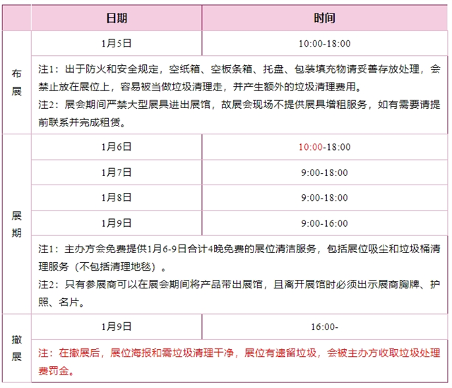 (4)展覽會完結時,所有展品、攤位物料必須在主辦機構規定的指定時間立刻清理。任何展品、攤位物料擱置于展覽會會場將視為棄置物品,主辦機構會向其參展商收取所需的清理費用。